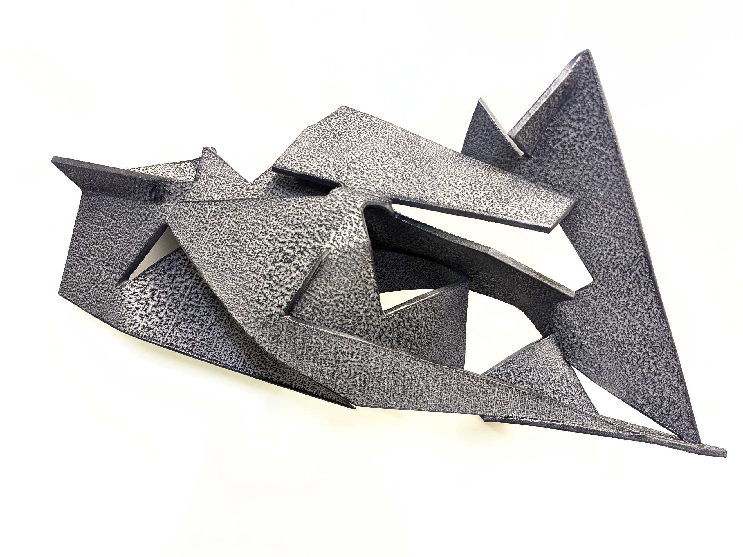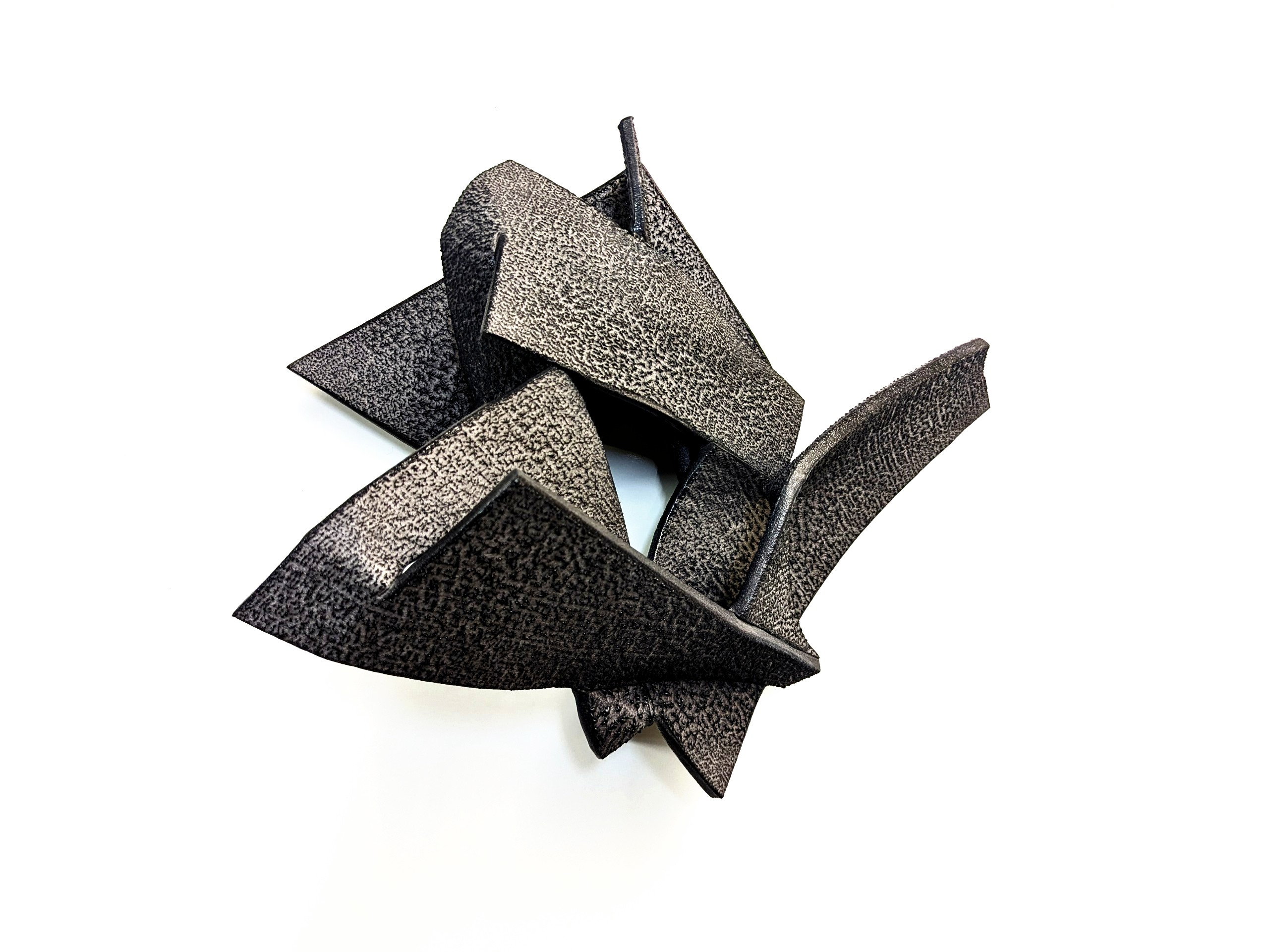 the forms scattered into space resemble sinuous, sensual curves cut at their base by the disruptive and imminent encounter with the surface that holds them. each piece represents a ventricle, an essential part of an evolving system that transformed becomes inert in time and space... the main intention is to face waste and transformation at the same level, by-products as central figures of inspiration, and transformed matter as the reflection of my emotions.